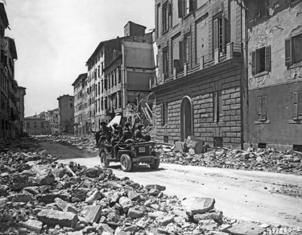 Một con phố tại Reggio Emilia,Italia sau chiến tranh Thế giới II và hiện tại
